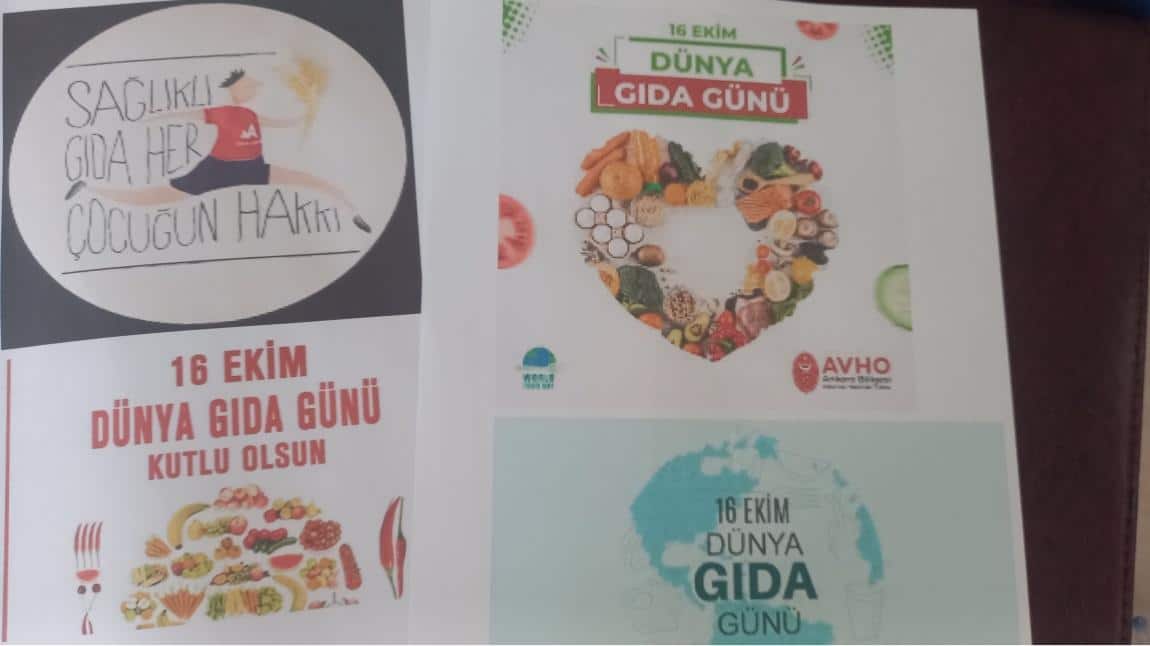 1. Öğrenciler ve veliler üzerinde farkındalık oluşturmak için Dünya Gıda Günü ile ilgili afiş hazırlandı.